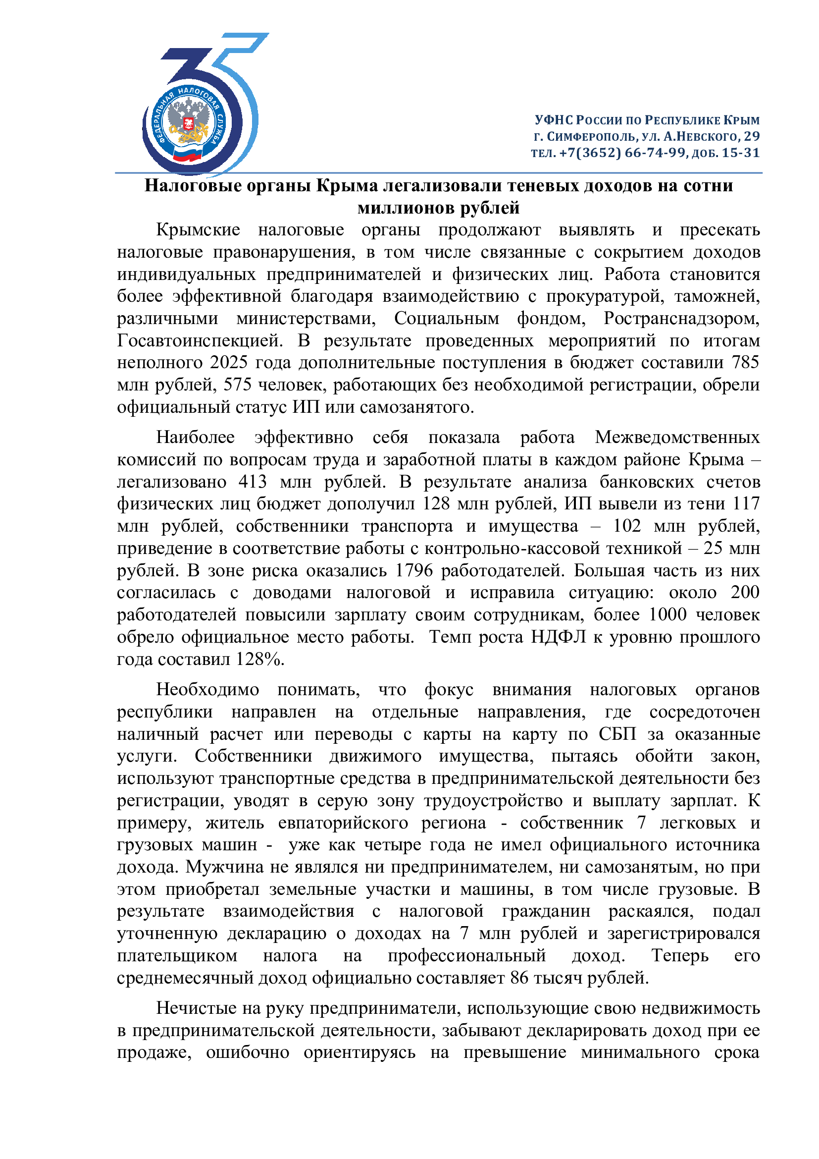 Налоговые органы Крыма легализовали теневых доходов на сотни миллионов рублей